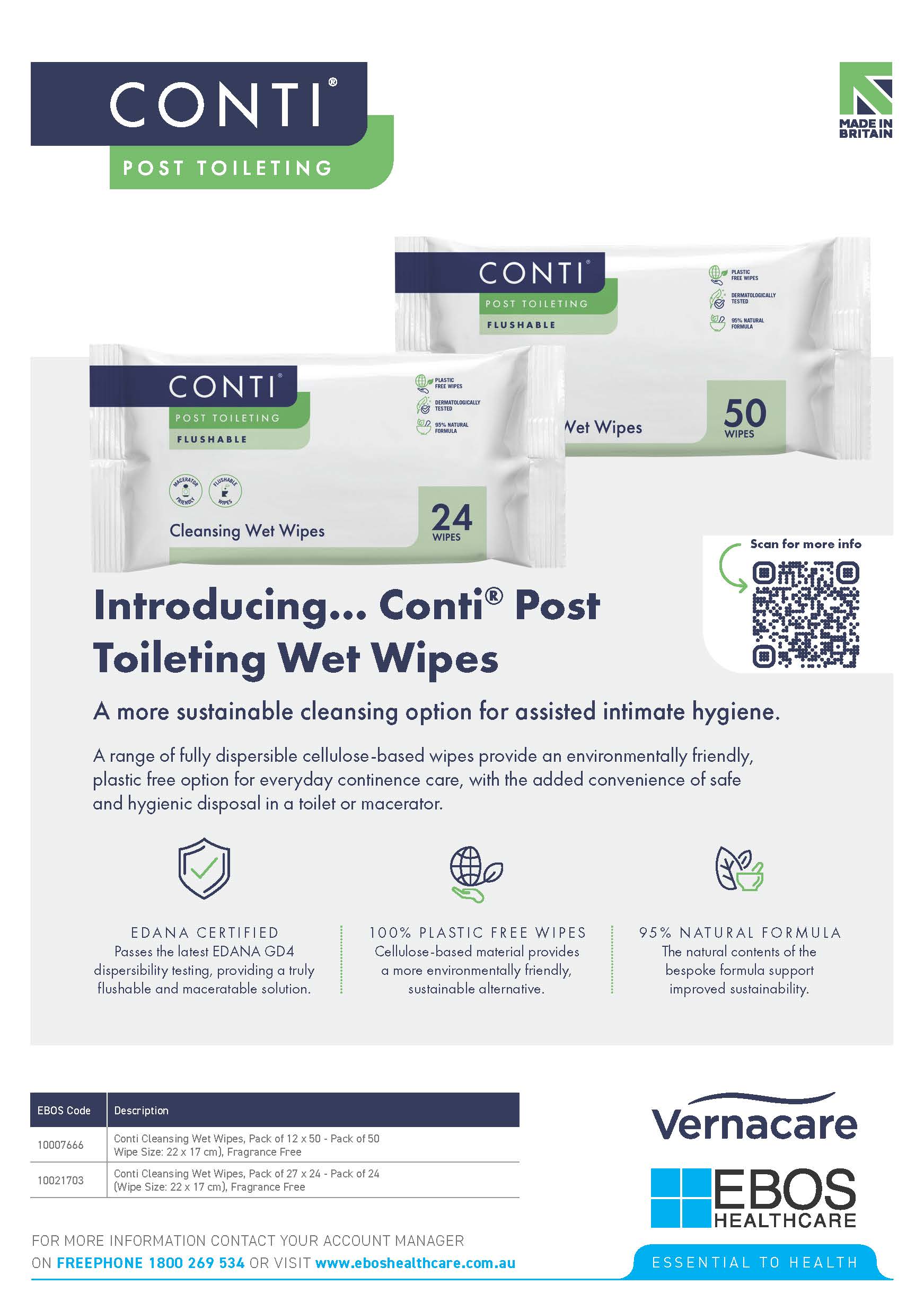 Conti® Maceratable Cleansing Wet Wipes is a sustainable cleansing option for continence care. The Conti Wet Wipes are designed with fully dispersable cellulosed-based wipes that are sustainable, environmentally friendly and a plastic free alternative for intimate hygiene. It is designed to allow for safe and hygienic disposal in toilets or a macerator.